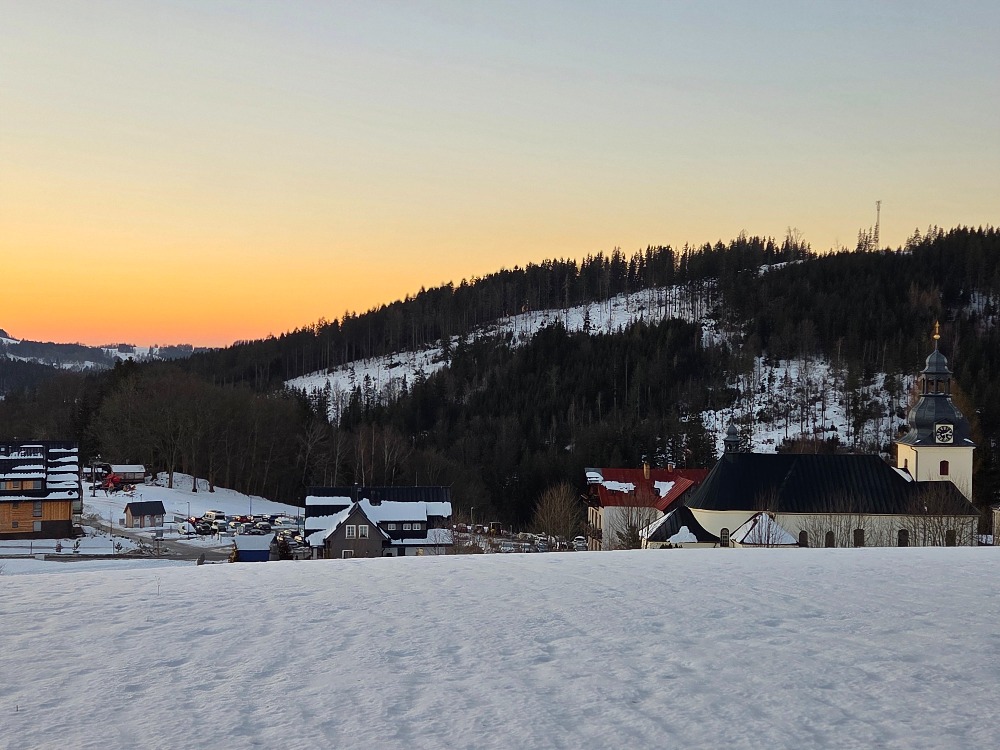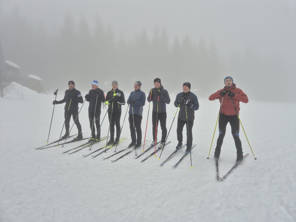 Po příjemném ranním posezení u čaje, koláčů a meruňkovice, vyrážíme po půl desáté na autobus který Nás vyveze na běžecké tratě do Horních Míseček. Jsem tu poprvé, a bohužel žádné výhledy nebudou. Je mlhavo a teplota kolem -2 °C.